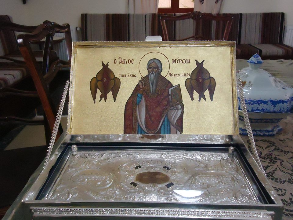 Αφίχθη στα Κύθηρα, σήμερα Σάββατο του Λαζάρου, το ιερόν απότμημα εκ του χαριτοβρύτου αγίου λειψάνου του πολιούχου της νήσου των Αντικυθήρων, Αγίου Ιερομάρτυρος Μύρωνος, του εν Κορίνθω διαλάμψαντος και εν Κυζίκω επί Δεκίου μαρτυρικώς τελειωθέντος. Το Ιερόν Λείψανον δωρήθηκε πρόσφατα στην Ιερά μας Μητρόπολη από το Κέντρο Αγιολογικών Σπουδών "Όσιος Συμεών ο Μεταφραστής" και τον Διευθυντή αυτού Καθηγητή κ. Αντώνιο Μάρκου, ενώ ανήκε το πρώτον στην προσωπική λειψανοσυλλογή του μακαριστού Πατριάρχου Ιεροσολύμων κυρού Νικοδήμου (1883-1890), του εκ Κυζίκου της Μ. Ασίας καταγομένου, ένθα και ο τόπος μαρτυρίου του Αγίου Μύρωνος.