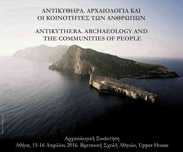 Την Παρασκευή 15 και το Σάββατο 16 Απριλίου 2016 διεξήχθη με επιτυχία στη Βρετανική Σχολή Αθηνών Αρχαιολογική Συνάντηση με θέμα «ΑΝΤΙΚΥΘΗΡΑ, ΑΡΧΑΙΟΛΟΓΙΑ ΚΑΙ ΟΙ ΚΟΙΝΟΤΗΤΕΣ ΤΩΝ ΑΝΘΡΩΠΩΝ» που διοργανώθηκε από το Πρόγραμμα Συστηματικής Ανασκαφής «Κάστρου» Αντικυθήρων με επικεφαλής της οργανωτικής επιτροπής τον κ. Άρη Τσαραβόπουλο, υπό την αιγίδα του Δήμου Κυθήρων.