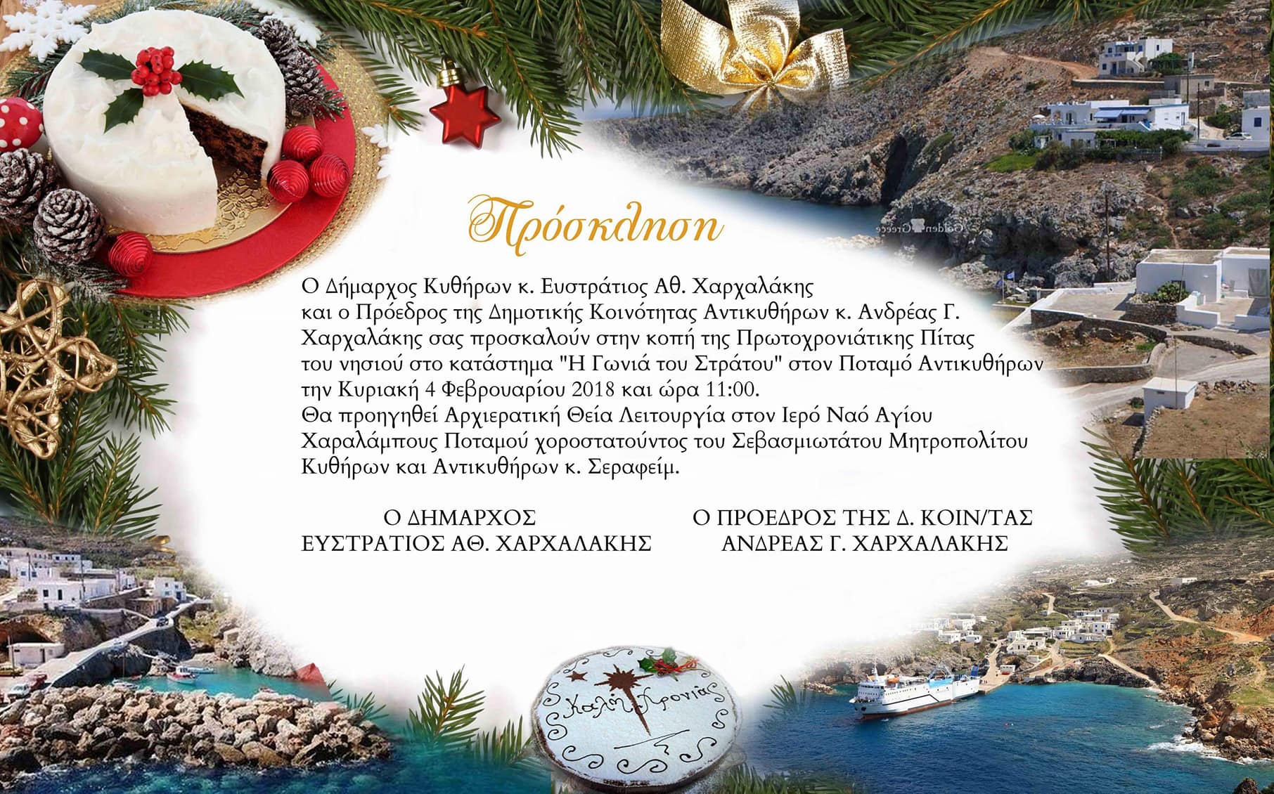 Η ΕΝΩΣΗ ΤΩΝ ΑΠΑΝΤΑΧΟΥ ΑΝΤΙΚΥΘΗΡΙΩΝ "Ο ΑΓΙΟΣ ΜΥΡΩΝ" ΘΑ ΔΙΟΡΓΑΝΩΣΕΙ ΤΗΝ ΠΑΙΔΙΚΗ ΧΡΙΣΤΟΥΓΕΝΝΙΑΤΙΚΗ ΕΟΡΤΗ ΤΟ ΣΑΒΒΑΤΟ 16 ΔΕΚΕΜΒΡΙΟΥ ΣΤΙΣ 17.30 μμ. ΣΤΗΝ ΑΙΘΟΥΣΑ ΤΗΣ ΚΥΘΗΡΑΪΚΗΣ ΑΔΕΛΦΟΤΗΤΑΣ ΣΤΟΝ ΠΕΙΡΑΙΑ ΕΠΙ ΤΗΣ ΟΔΟΥ ΝΑΥΑΡΙΝΟΥ 7.